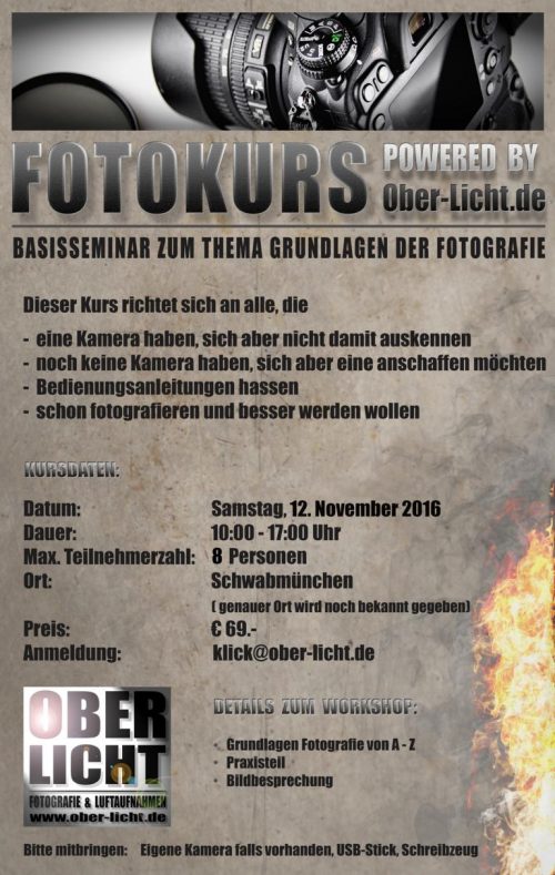 AUSGEBUCHT – Basisseminar 12. November 2016Seminar: Grundlagen der Fotografie Anmeldung: klick@ober-licht.deKategorie: AktuellesVon Jürgen Ober29. September 2016Autor: Jürgen Ober http://www.ar-projekte.deKommentarnavigationZurückVorheriger Beitrag:Fotokurs 25. Juni 2016NächstesNächster Beitrag:Fotokurs 01. April 2017Related Posts15. März 2025 – Seminar Fotografie Grundlagen18. Januar 202518. November 2023 – Seminar Handyfotografie1. Juli 202326. November 2022 – Seminar Fotografie Grundlagen17. August 202227. November 2021 – Seminar Fotografie Grundlagen4. Oktober 2021Photoshop von A-Z am 24. / 25. Juli 202120. Juni 2021Seminare Photoshop Grundlagen – Auf Anfrage20. Juni 2021